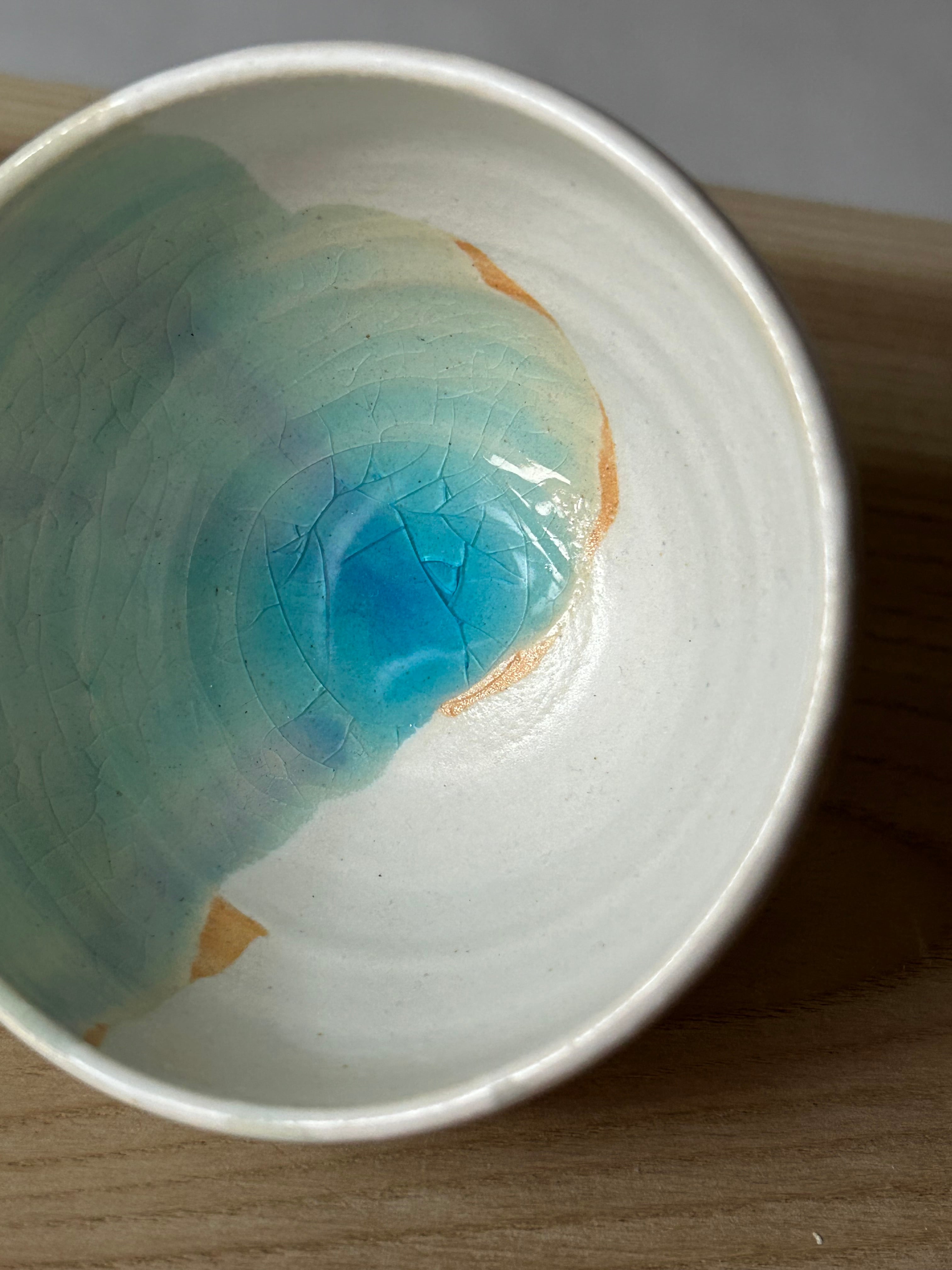 畠山圭史の定番シリーズ「waterplanet 地球」シリーズの“地球碗”をオンラインにて販売します。お茶にピッタリサイズです。
